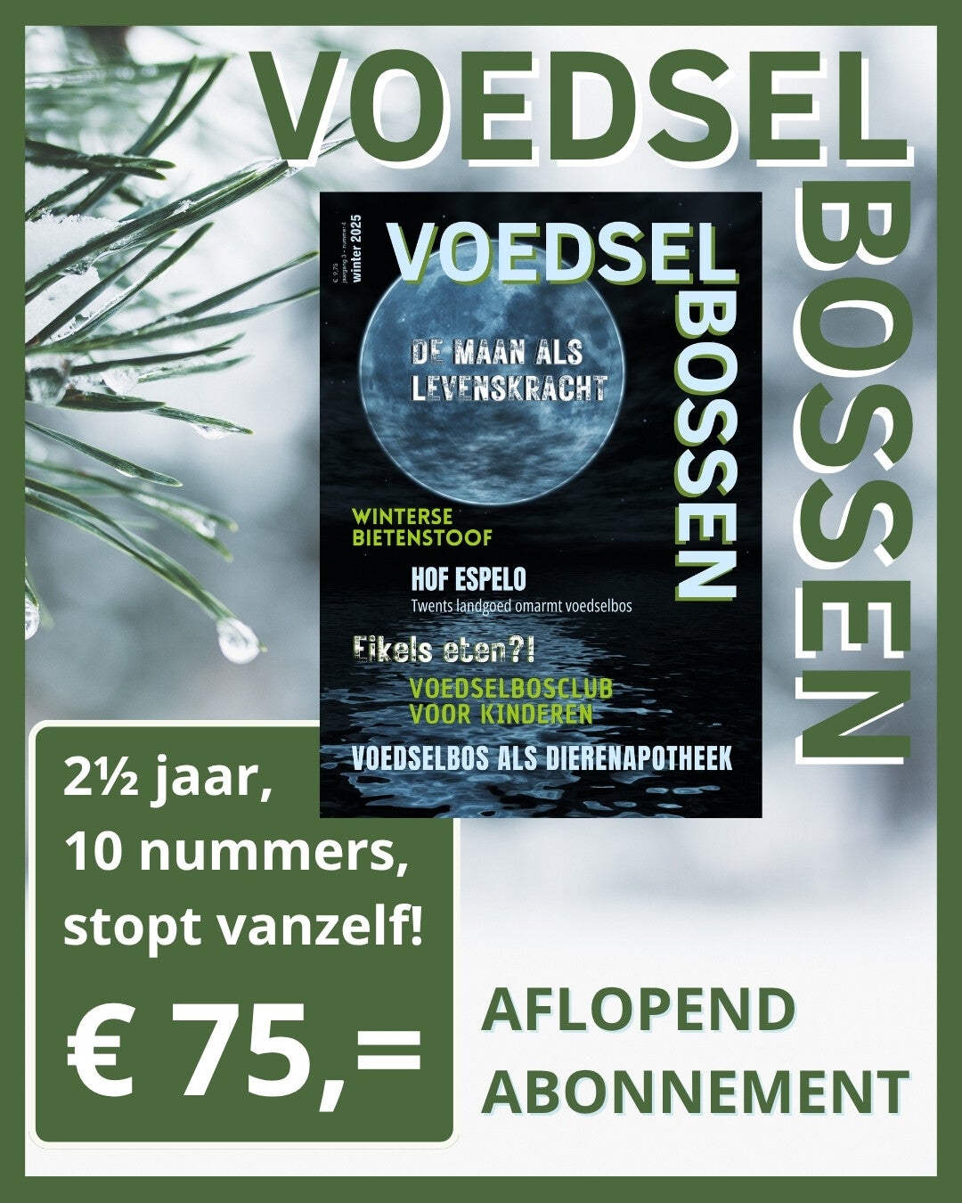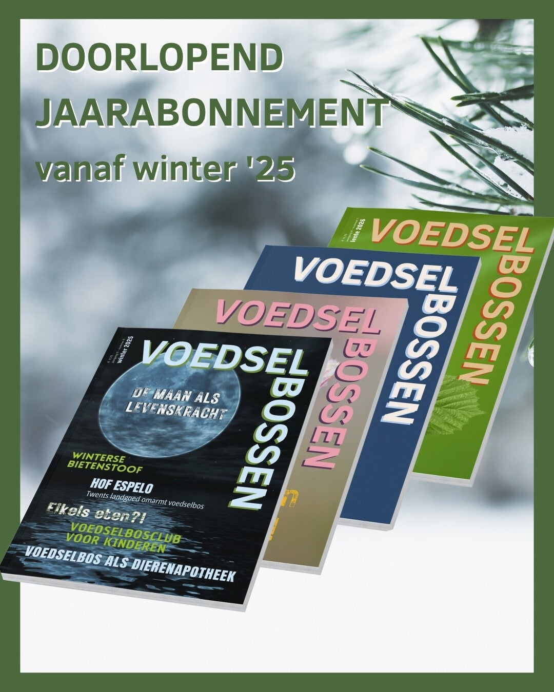 Voedselbossen Magazine is een kwartaalblad dat schrijft over voedselbossen, eetbare kruiden en gewassen en daarnaast over alles wat met lokaal voedsel en biodiversiteit te maken heeft. Dit tijdschrift wordt uitgegeven door Stichting Groener en wil graag mensen met de natuur verbinden en hen inspireren om groen te leven.