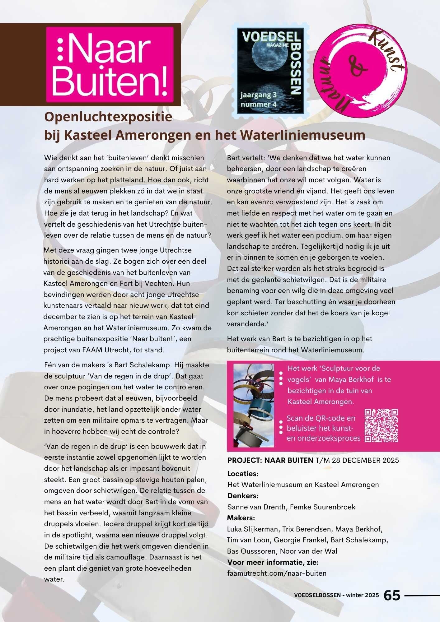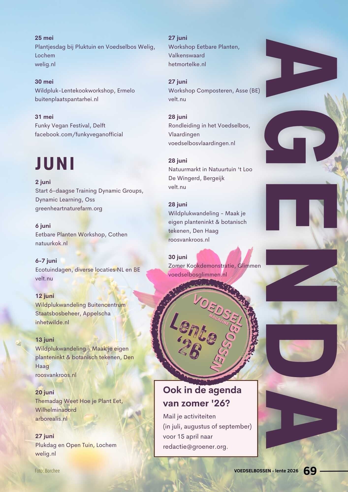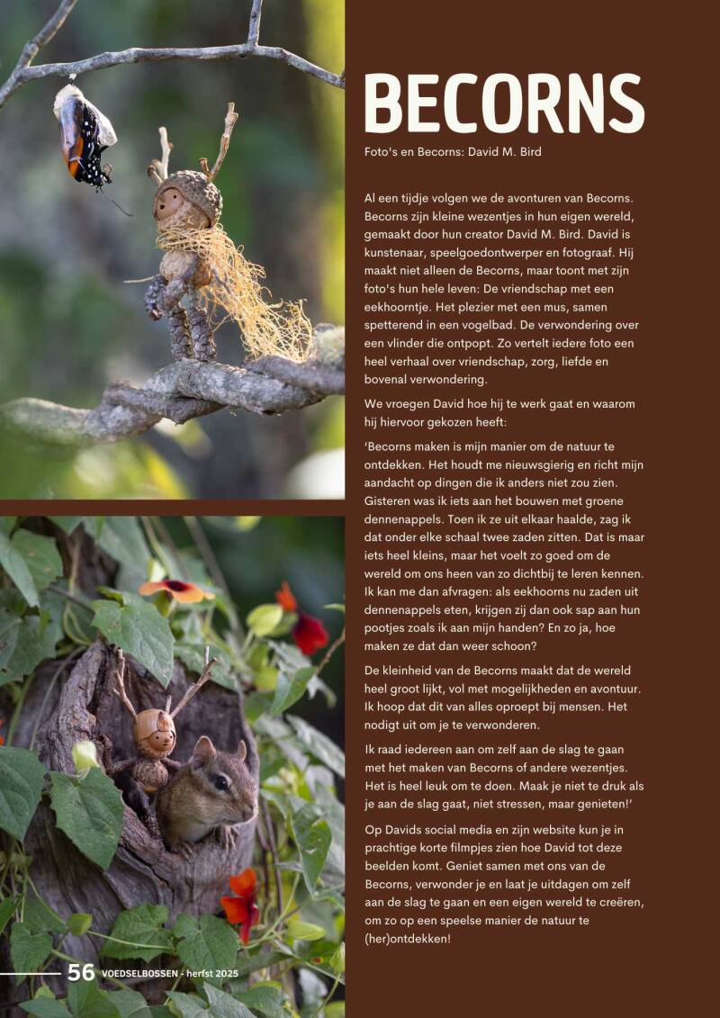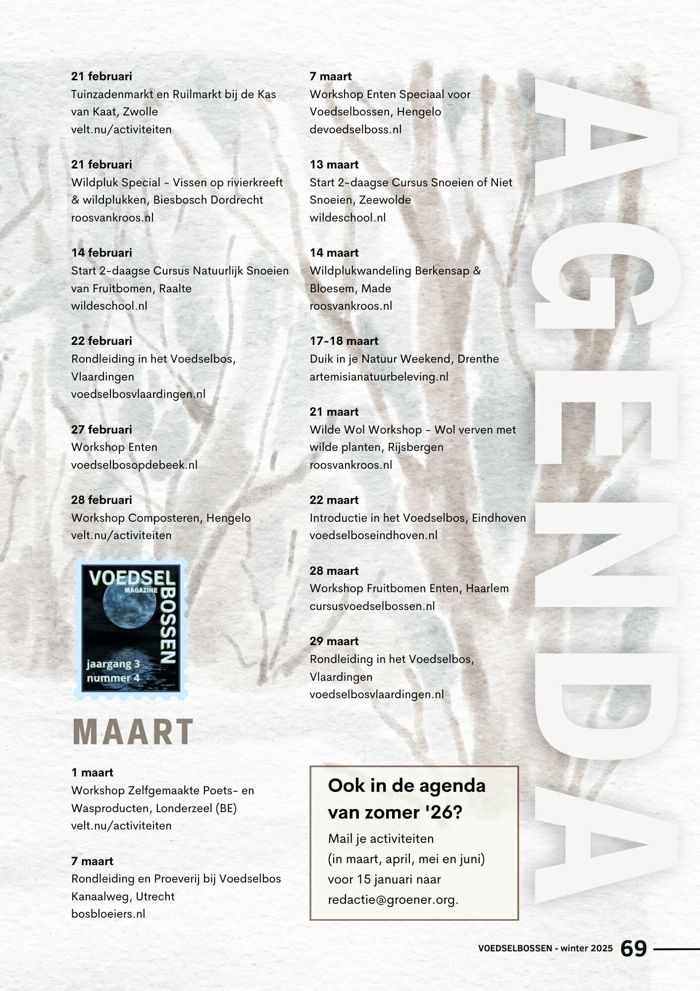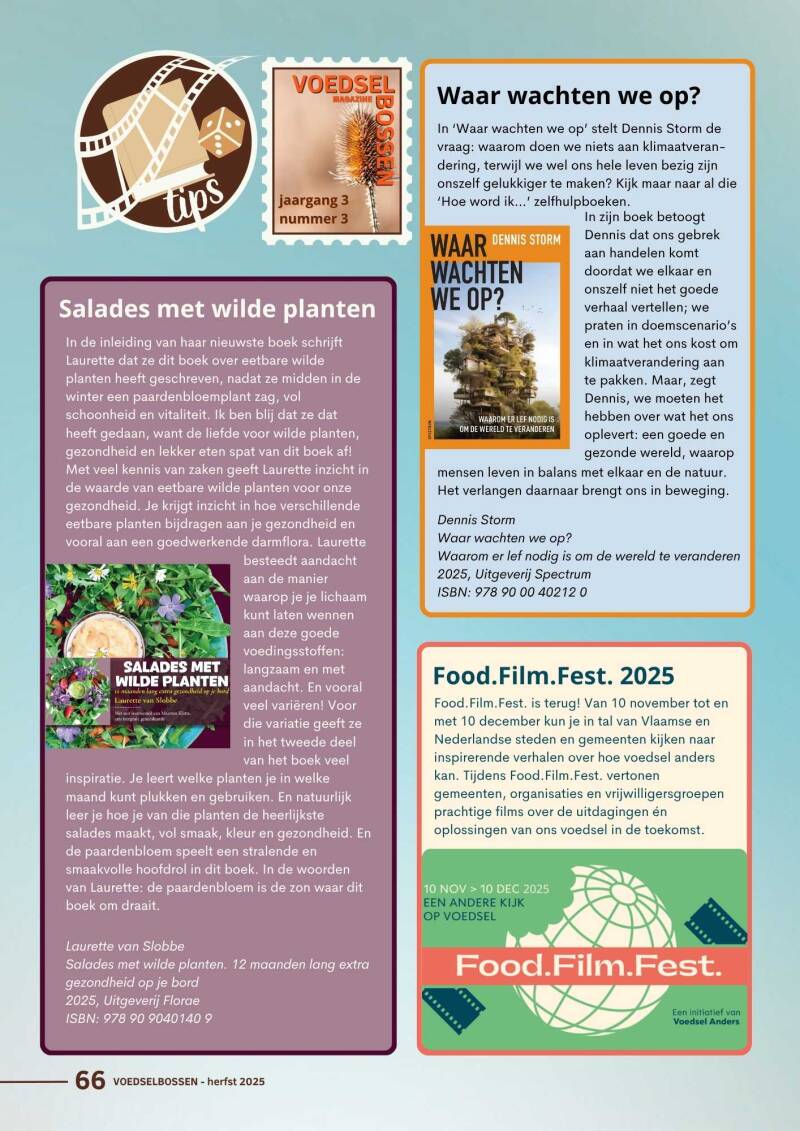 Inspiratie is nodig om van een droom werkelijkheid te worden. Daarom in elk nummer inspiratie vanuit kunst, boeken, gedichten en creativiteit. En de voedselbosagenda voor de komende drie maanden.